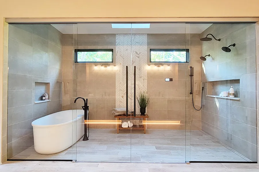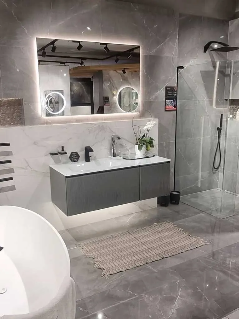 - Installation of wall-hung toilets, freestanding baths, and rainfall showers